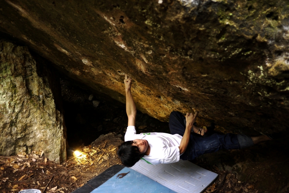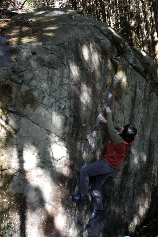 下部で一度落ちたが次のトライでGET!もっと長いバージョンの「オルトロス」には興味が皆無なのでもうこの岩には用はないかな