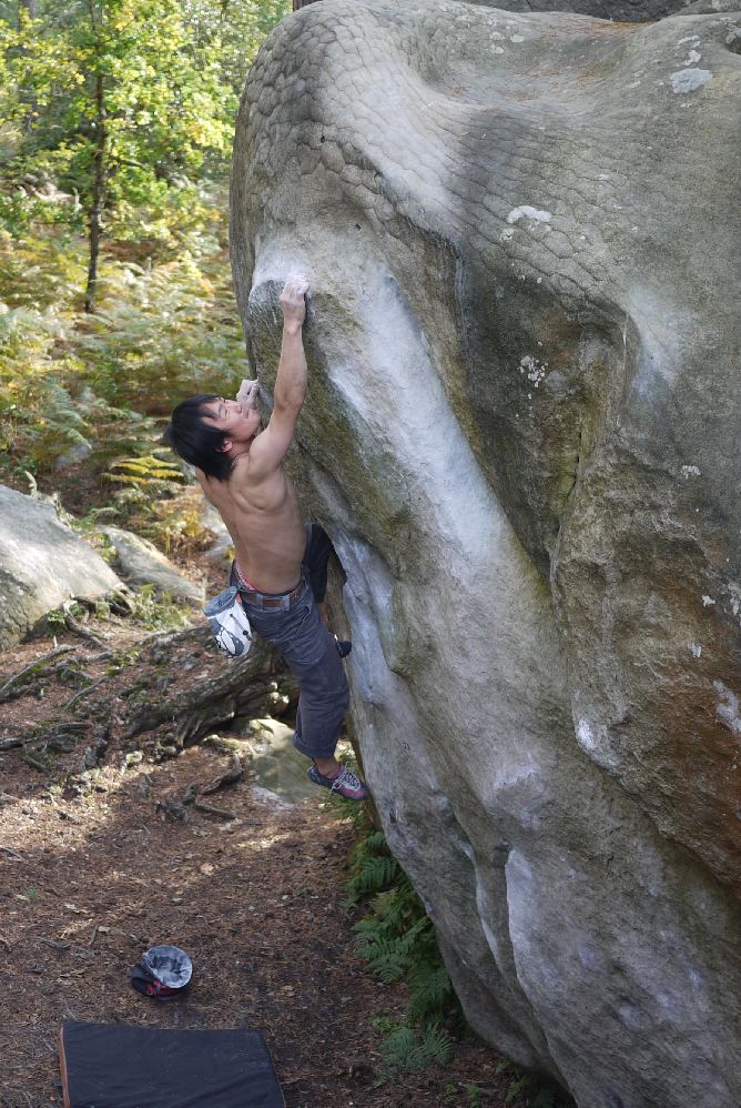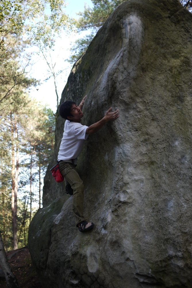 とりあえずルーフカンテ課題 Le Moutan 6 pattesという7aを登った。フックとか駆使して最後はブローらしいウロコ状形状をマントルして終了。超楽しかった。