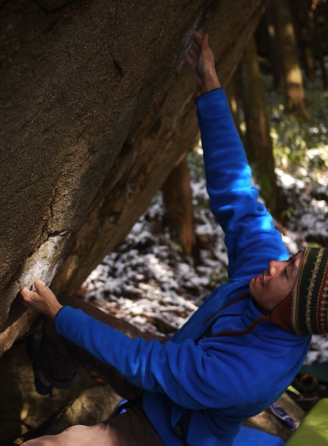 話は戻り「シャンバラ」初登、ということはすごいことだと思います。近場にV15という課題があるということも含めて。ただ、僕みたいなへなちょこクライマーがこのグレードをトライすることは多分ないであろうし、小山田さんはすばらしいラインといっていますが、僕は地面(斜面)と平行して登る課題はあまり好きとは言えないので素晴らしいラインとは思えませんが...まぁ価値観の違いってやつではないでしょうか