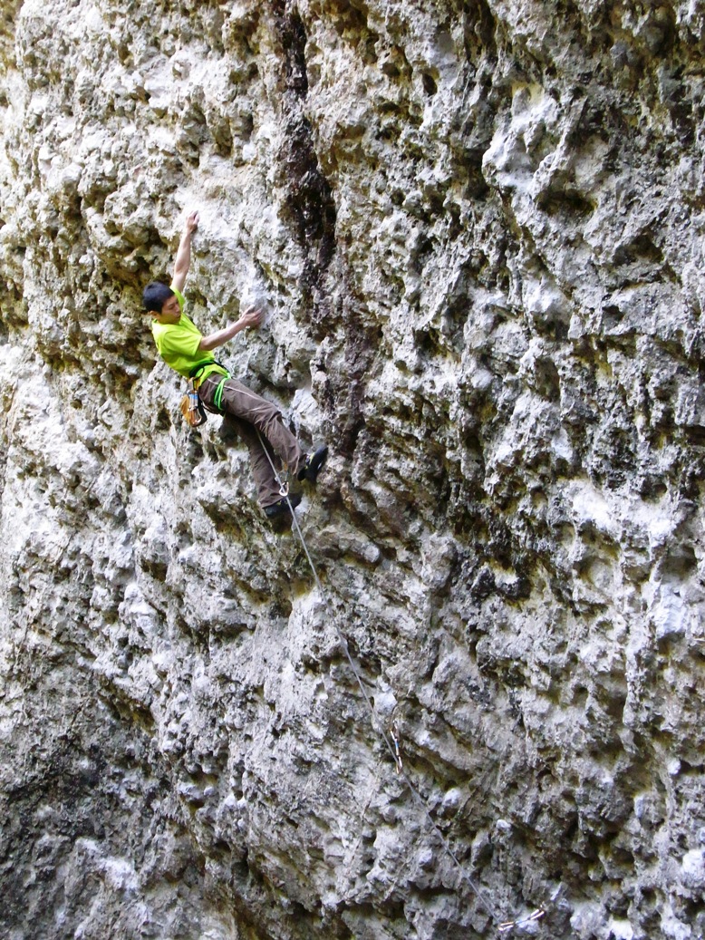 降りてきたらH田さんが登るというので見学。かな~り鳳来でのルートクライミングは久々らしい。鬼岩入門(5.11a)、留年(5.11d)、卒業(5.12b)、禁断のセプテンバー(5.12c)を前に登ったことがあると言いつつトライしていた。岩に慣れるためと言っていたがすごいスパンでトライしていたな...やっぱすごすぎ。