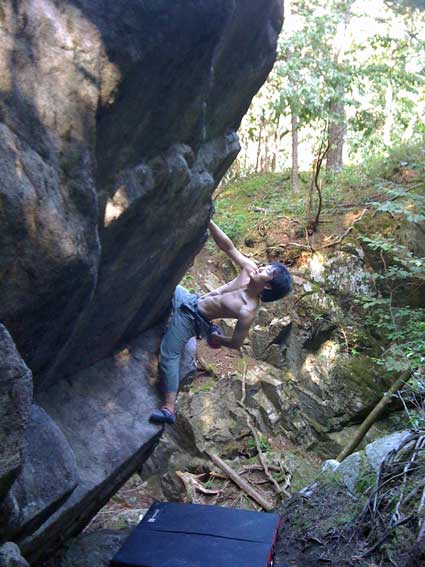 次は近くのレッドブルの岩で「ドレッド」3級をやることに。僕は一撃。
