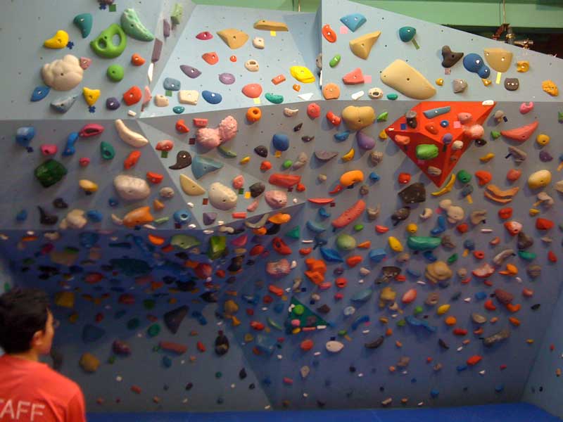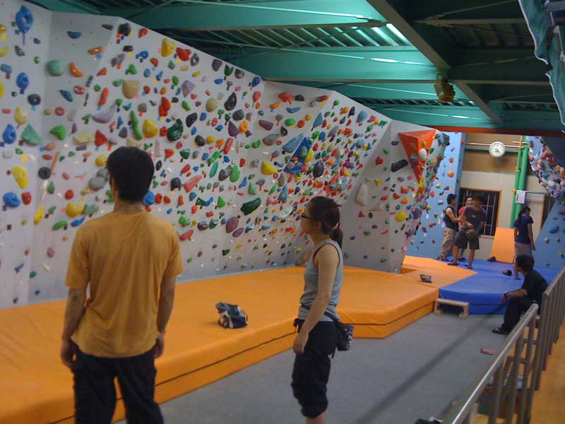写真を見ればわかりますが、高さのない壁ですがスラブからルーフまで様々な傾斜が配置されていて、とても楽しかった!ホールドもまだ新品なのでガビガビしてて皮スグ無くなりましたが面白いシェイプでした。ロープクライミングの壁もありますが全部で3ピン。6mほどでしょうか。正直クリップしても落ちれないなんともいえない恐怖感でした。とりあえず今のところ最難の5.11cをオンサイトしました。ホールド悪かった。