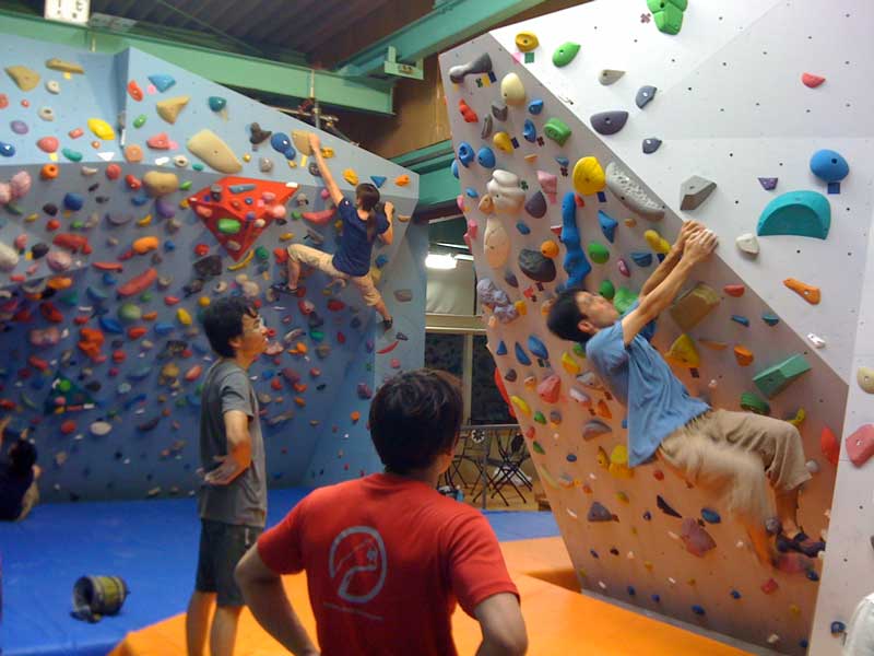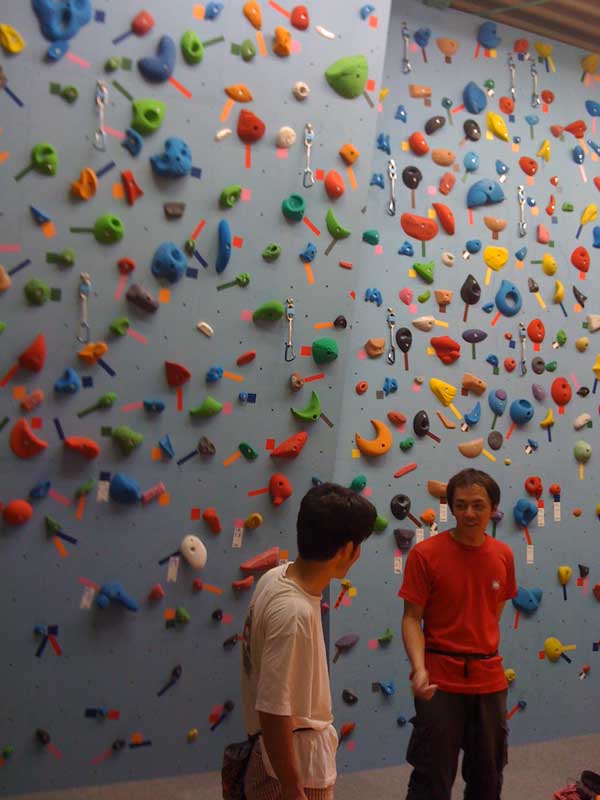 さすがプレオープンだけあって「マット超きれい!ホールド超きれい!」で、チョークをつけることがなんか悪い気がしました。アップで40手の長モノをやりました。長~いトラバースです。