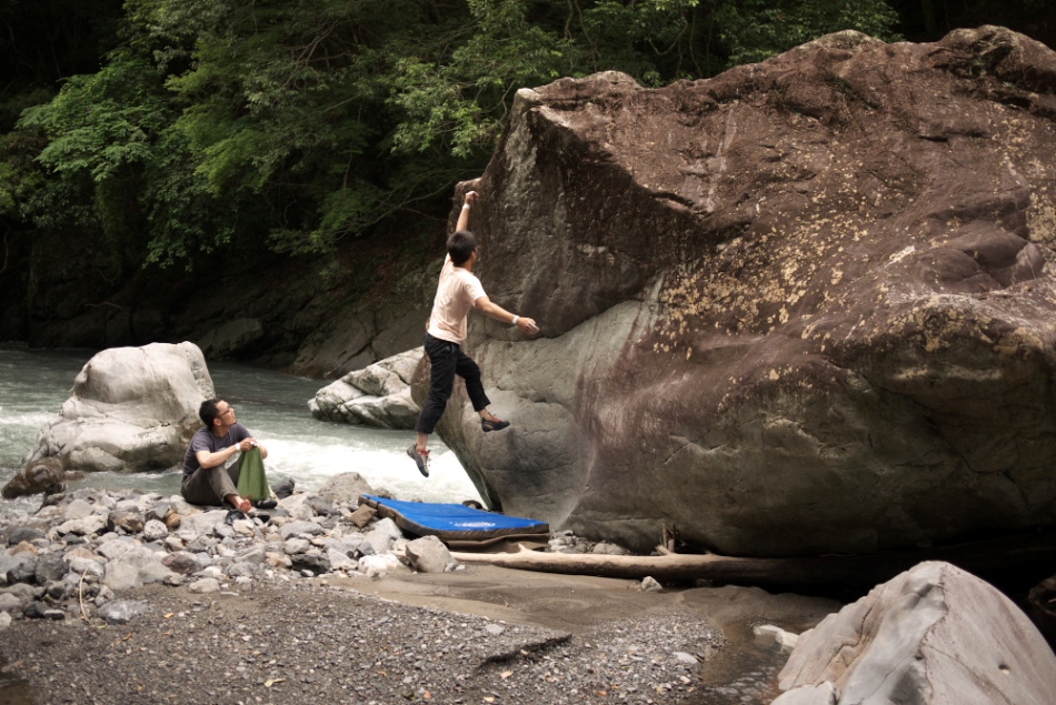 朝早く浜松を出発して着いたのが8時くらい。早速マットを担いでビクターへ登りに行きました。登れてなかった三日月ハングをトライしに行ったんだけど、着いたた急に雨が...小雨だったので気にさずトライ。4トライくらいで登れちゃいました。一度マントルでフォールした時はドキドキしました。やっぱ雨の中でマントリングはやばいなぁ...